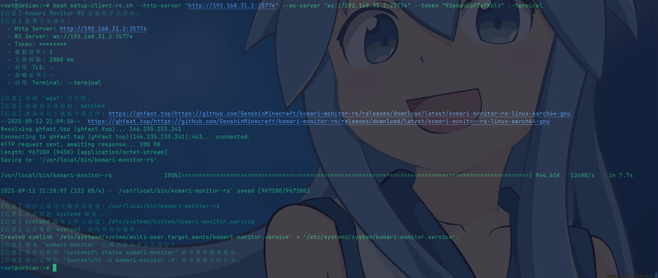 若未更改,一键脚本安装目录位于 /usr/local/bin/komari-monitor-rs